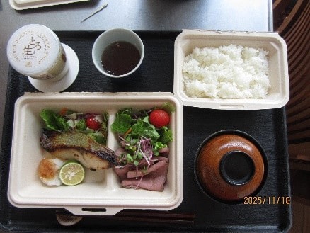 今月のレクレーションはインフルエンザ等の感染予防の観点からお食事会に代わり、お好みでメインのお肉かお魚を選んでいただいた「和かふぇランチ」のお弁当となめらかプリンのデザートを各お部屋にお届いたしました。